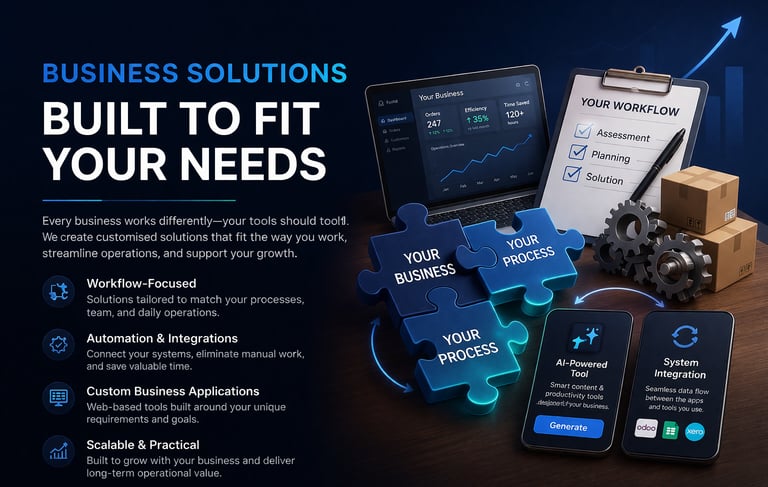 We create customised digital solutions for growing businesses that need more than standard software. Through tailored web development, AI-powered tools, workflow automation, and seamless integrations, we deliver practical solutions designed around real business processes to improve efficiency, streamline operations, and drive long-term value.