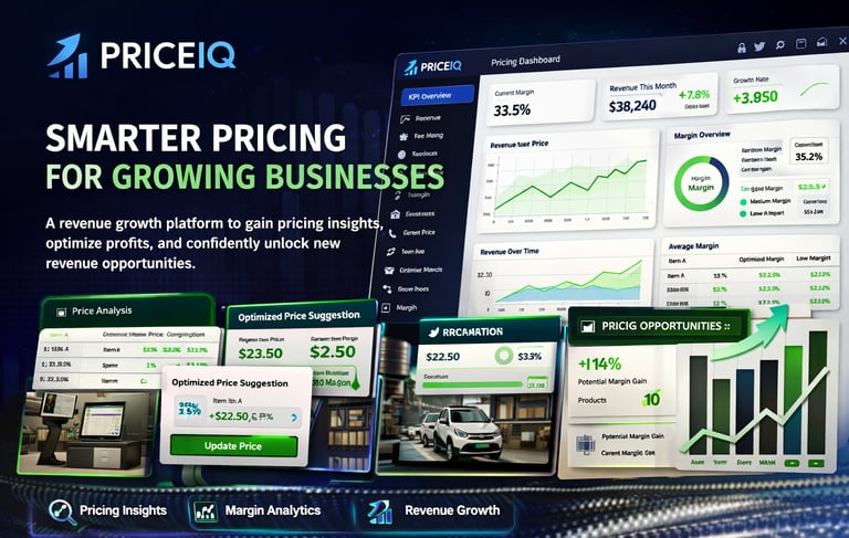 PriceIQ is a premium revenue growth platform designed for growing businesses that need sharper pricing decisions, stronger margin control, and better visibility across commercial performance. Built to simplify complex revenue decisions, it empowers teams to unlock growth opportunities faster, act with confidence, and drive more profitable outcomes.
